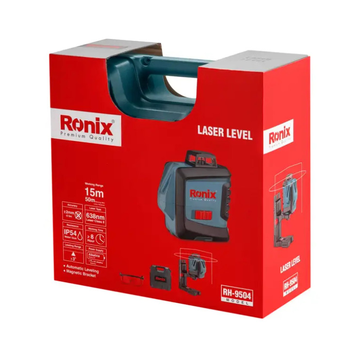 تراز لیزری RH-9504 رونیکس، یکی از ابزارهای اندازهگیری دقیق این برند و با دامنه خودترازی با دقت °3± است. پرتوهای لیزر این تراز، در زوایای 360 و 120 درجه عمودی و افقی از این ابزار منتشر میشوند. برد این ابزار 15 متر است و با استفاده از رسیور، به 50 متر میرسد تا از آن در فضاهای بیرونی نیز استفاده کرد.