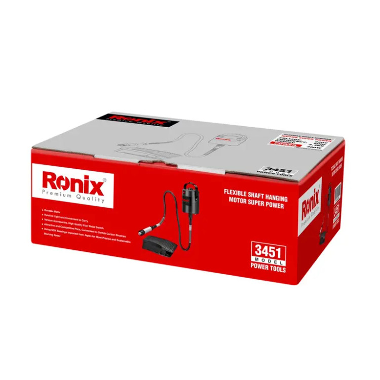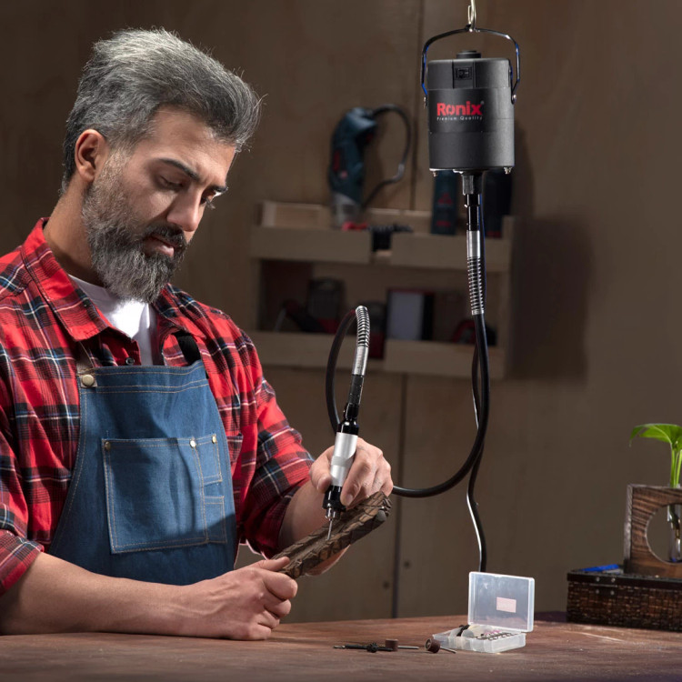 شلنگ سه نظامدار فرز مینیاتوری 3451 رونیکس باعث میشود تا بتوانید با آن مانند قلم کار کرده و سطوح مختلف را حکاکی کنید. همچنین، میتوانید با پدال پایی به راحتی سرعت ابزار را کنترل کرده و آن را خاموش و روشن کنید. به این ترتیب، با دستان آزاد تسلط بیشتری روی قطعهی کار خواهید داشت. قلاب فرز مینیاتوری پدالی سه نظامدار 3451 رونیکس، قابل نصب روی دیوار و سقف است و کار را برای کاربران آسانتر میکند