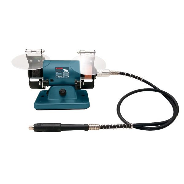 سنگ سنباده رومیزی 150 میلیمتر 375 وات استرانگ مدل STG2606 با برق 220 ولت و فرکانس کاری 50 هرتز کار میکند. سرعت گردش صفحه سنگ این محصول در حالت آزاد برابر 2950 دور در دقیقه میباشد. سایز صفحه ی این دستگاه 150 میلیمتر و در دو طرف دستگاه سنگ سنباده هایی به زبری مختلف تعبیه شده تا بر حسب نیاز، کاربر بتواند از آنها استفاده نمایید. قدرت موتور این دستگاه برابر 375 وات بوده و دارای 12 ماه گارانتی میباشد. سنگ رومیزی یک ابزار پرکاربرد برای پروژه های صنعتی و نیمه صنعتی می باشد. سنگ زنی یکی از فرآیندهای تغییر شکل دادن فلزات از طریق براده برداری است که به وسیله ابزاری به نام چرخ سنباده و یا سنگ سنباده صورت می گیرد. فرآیند سنگ زنی بر کیفیت و دقت تولید اثر می گذارد. دستگاه سنگ سنباده رو میزی استرانگ ابزاری برقی است که با استفاده از آن می توانید عملیات سنباده زنی، براده برداری وپولیش زنی را به راحتی انجام دهید. توسط این ابزار می توان سطوح سخت و آب دیده را تغییر شکل داد. نتیجه این کار، ایجاد سطحی صاف، با کیفیت و با اندازه دقیق است. همچنین از دستگاه سنگ زنی می توان برای تیز کردن ابزارهایی مثل تیغ برش، چاقو و … استفاده کرد. سنگ سنباده رومیزی 150 میلیمتر 375 وات استرانگ مدل STG2606 وزن مناسبی دارد و کم صدا طراحی شده است. اطراف سنگ این محصول نیز با کمک حفاظ هایی پوشیده شده است. این سنگ رومیزی برای تیز کردن قطعات فلزی نیز مورد استفاده قرار می گیرد. برخی از کاربرد های دستگاه سنگ رو میزی شکل دادن انواع ابزار سایش و پولیش کاری سطحی قطعات تمیزکاری سطوح قطعات براده برداری از سطح و جدا کردن قسمتهای اضافی از قطعه ساخته شده تیز کردن انواع ابزار برش مثل چاقو، تبر، تیغ برش و …