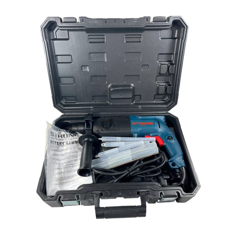 بتن کن 3 کیلویی سه کاره اتومات 620 وات استرانگ مدل STG1726 دارای قدرتی معادل 620 وات است و در فرکانس کاری 50 هرتز و ولتاژ 220 ولت کار میکند. قدرت ضربه برای این دستگاه تخریب 3 کیلویی استرانگ 2.6 ژول تعریف شده و حداکثر سرعت ضربه برابر 4850 bpm است. موتور بتن کن 3 کیلویی سه کاره اتومات 620 وات استرانگ مدل STG1726 با آرمیچرهای با کیفیت و 100% مسی مطابق استاندارد CE اتحادیه اروپا نخ بندی شده است.