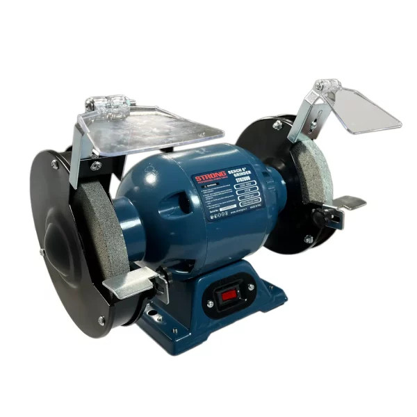 دستگاه سنگ سنباده رو میزی استرانگ ابزاری برقي است كه با استفاده از آن می توانيد عمليات سنباده زنی، براده برداری وپولیش زنی را به راحتي انجام دهيد. توسط اين ابزار می توان سطوح سخت و آب ديده را تغيير شكل داد. نتيجه اين كار، ايجاد سطحي صاف، با كيفيت و با اندازه دقيق است. همچنين از دستگاه سنگ زنی می توان برای تيز كردن ابزارهايی مثل تيغ برش، چاقو و … استفاده كرد.