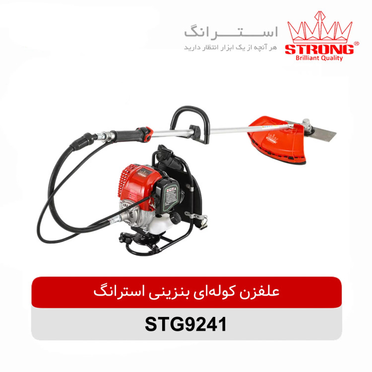 علف زن بنزینی دارای حجم موتور ۴۱.۵ سی سی، حجم مخزن سوخت معادل ۰.۶۵ لیتر و قطر تیغه ۲۵۵ میلیمتری میباشد موتور علفزن کوله ای بنزینی استرانگ مدل STG9241 دو زمانه بوده و سرعت حرکت تیغه آن ۱۰۸۰۰ دور در دقیقه میباشد، گارد محافظ جهت ایمنی بیشتر و بند و پشتی کوله ای جهت سهولت استفاده به این محصول مجهز شده است.