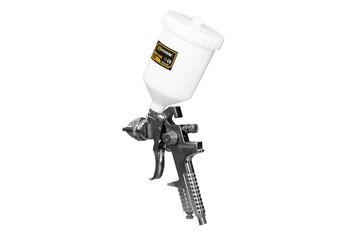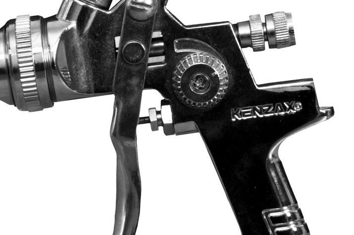 پيستوله بادی مدل KSG-827 کنزاکس یک پیستوله سه تنظیم با مخزن پلاستیکی شفاف و مقاوم با ظرفیت 600 سی سی می باشد و فشار کاری آن 3.5 بار یا PSI 50 است که با نازل 1.3، 1.6، 1.7، و 1.8 میلی متر با حجم هوای مصرفی 8-10 CFM این عمل را انجام می دهد. این پیستوله سیستم رنگ پاشی HVLP و دارای پیچ تنظیم میزان خروجی و پهنای پاشش رنگ است. همچنین بدنه ی آلومینیومی این محصول دارای روکشی از آلیاژ کروم نیکل و سوزن این محصول از جنس استیل ضد زنگ و نازل از جنس برنج است. طراحی دسته این محصول ارگونومیک بوده و از مواد درجه یک و با کیفیت تولید شده است. از دیگر مزایای این محصول می توان به دنباله شلنگ خور آن نیز اشاره کرد.