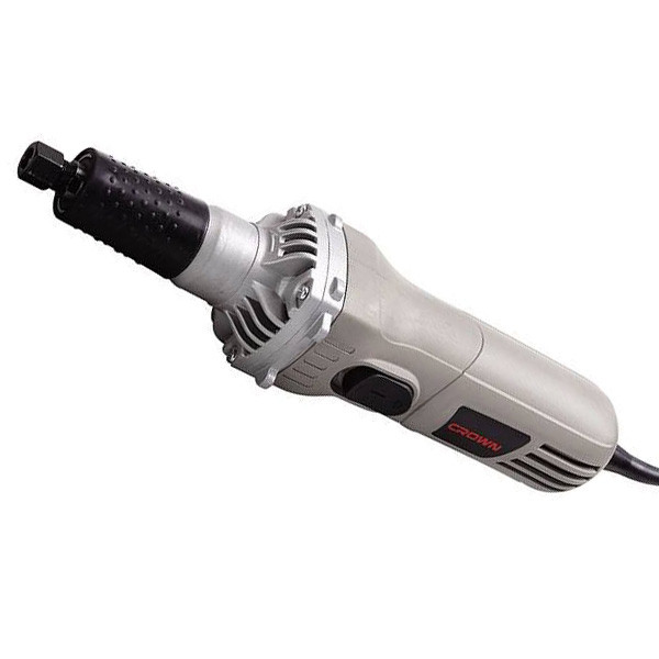 فرز انگشتی 600 وات کرون CT13307 ساخت کشور چین است و برای منبت کاری،حکاکی بر روی چوب و ظریف کاری هایی که به دقت بسیار بالایی نیاز دارند، استفاده می شود. این فرز دارای کولت 6 میلی متری بوده و که در حالت آزاد با سرعتی بین 12000-27000 دور در دقیقه گردش می کند.این فرز به دلیل اینکه کاربری های مختلفی داشته به سرعت های مختلفی نیز نیاز دارد.به همین منظور کلید دیمر بر روی آن تعبیه شده تا کاربر بر اساس نوع کار خوداز سرعت مناسب دستگاه استفاده نماید.موتور این دستگاه دارای توان 600 وات بوده و بسیار قدرتمند می باشد.این دستگاه به گونه ایی طراحی شده که دارای سری یا گلوی بلند بوده تا در مناطقی که دسترسی سخت و دشواری دارند به راحتی بتوان از این فرز استفاده کرد.چرخ دنده های این فرز فلزی بوده و دارای بدنه مقاوم از جنس آلیاژ آلومینیوم می باشد.این دستگاه بسیار سبک وزن و خوش دست بوده و قابلیت حمل آسانی نیز دارند.همراه این محصول یک عدد آچار مخصوص جهت تعویض کولت و دفترچه راهنما قابل دریافت است.