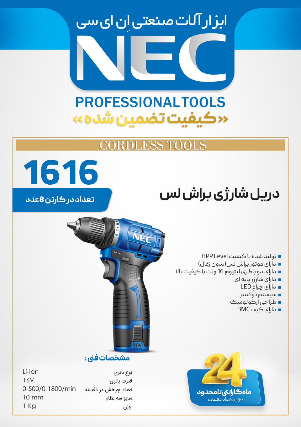 【مشخصات فنی دریل شارژی 1616-NEC】